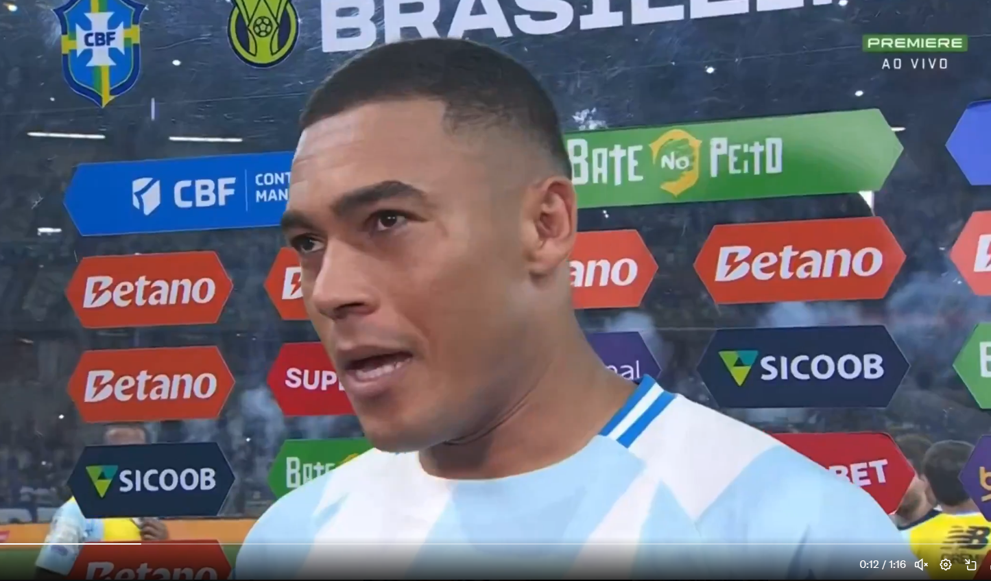 Resumo do que disse o Carlos Vinícius na saída de campo após a partida contra o Cruzeiro: