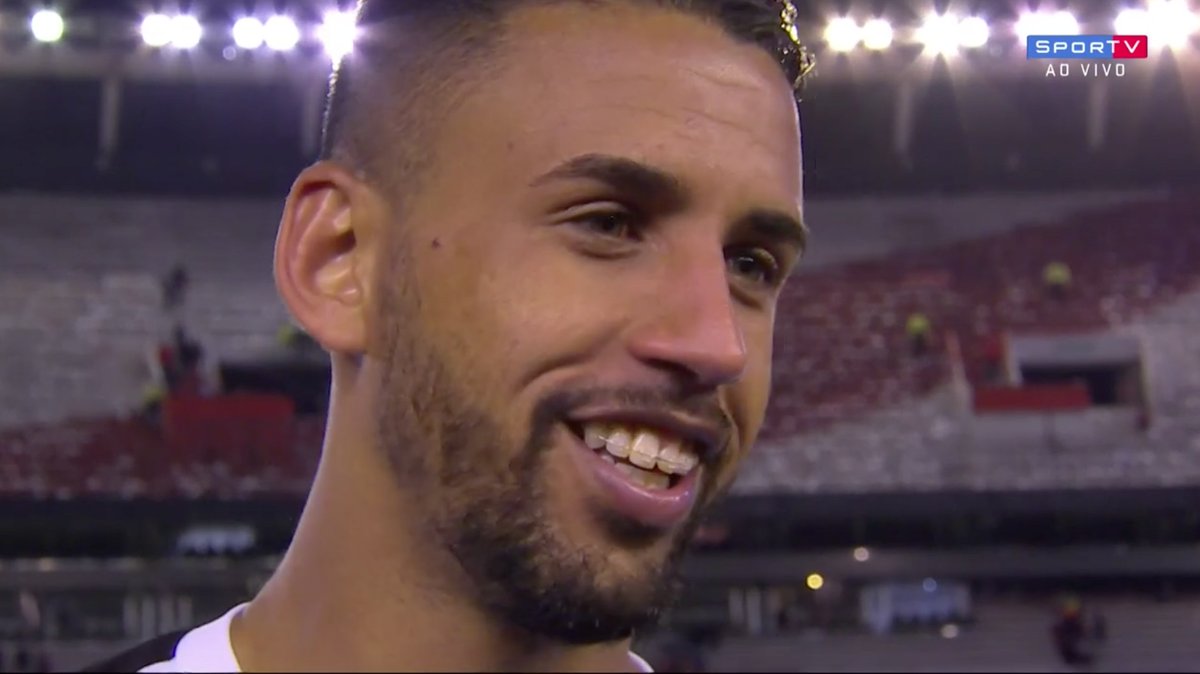 O volante Michel falou na saída do gramado com o Sportv e dedicou seu gol para um primo, Levi, que previu o gol dele contra o River.