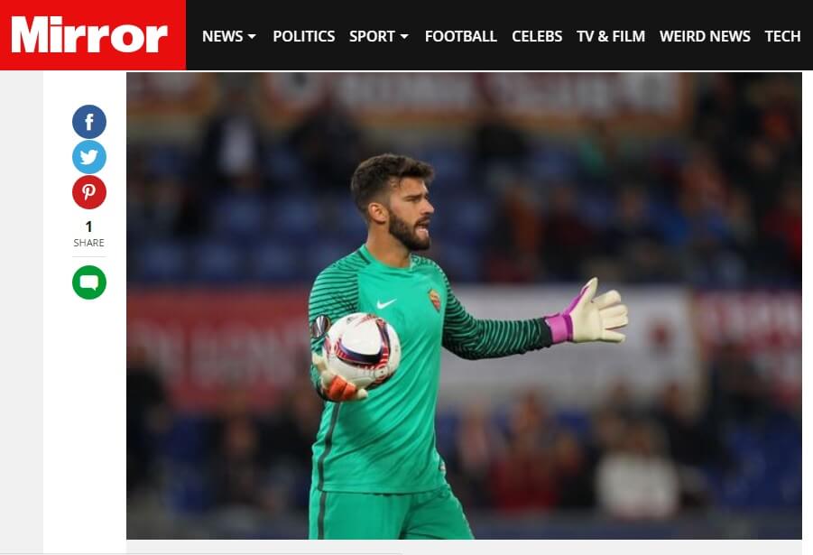 Segundo informação publicada pelo jornal britânico, Mirror, Manchester United e Chelsea se juntaram entre os interessados pelo goleiro Alisson, da Roma.