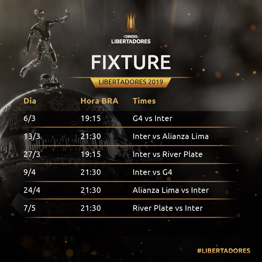 - Antes de qualquer coisa, ai em cima está a tabela de jogos do Inter na Libertadores.